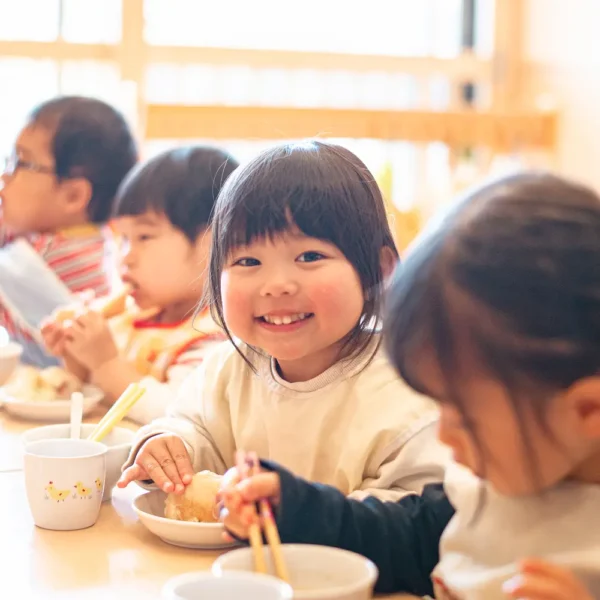園内で手作りの給食・おやつを提供しているためアレルギーも対応しています。栄養バランスを考えた献立で、季節の食材も取り入れています。