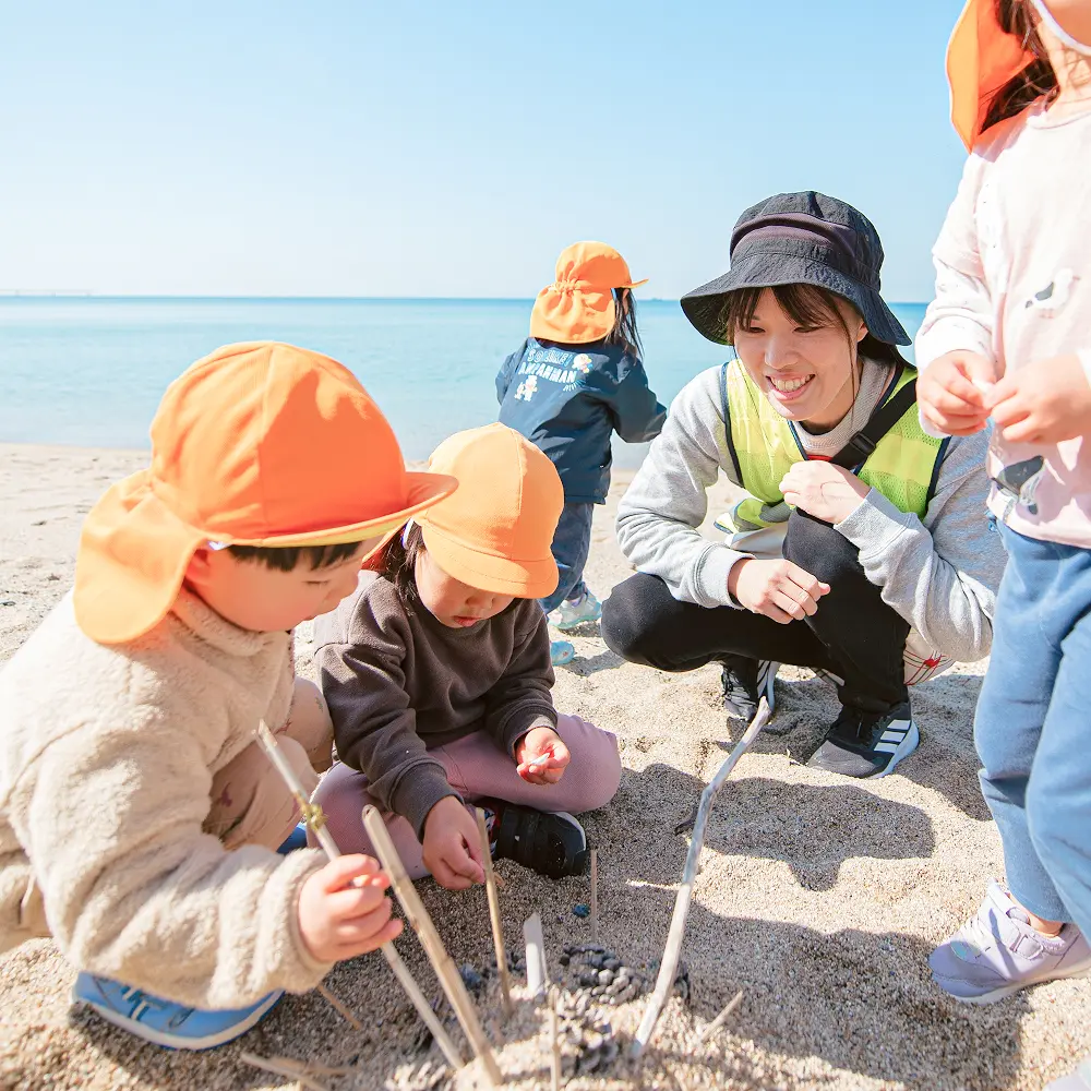 こども一人ひとりの個性や発達のペースに寄り添い、安心できる環境の中で主体的な遊びと学びを大切にします。人との関わりや自然体験を通して、自ら考え行動する力を育くみます。